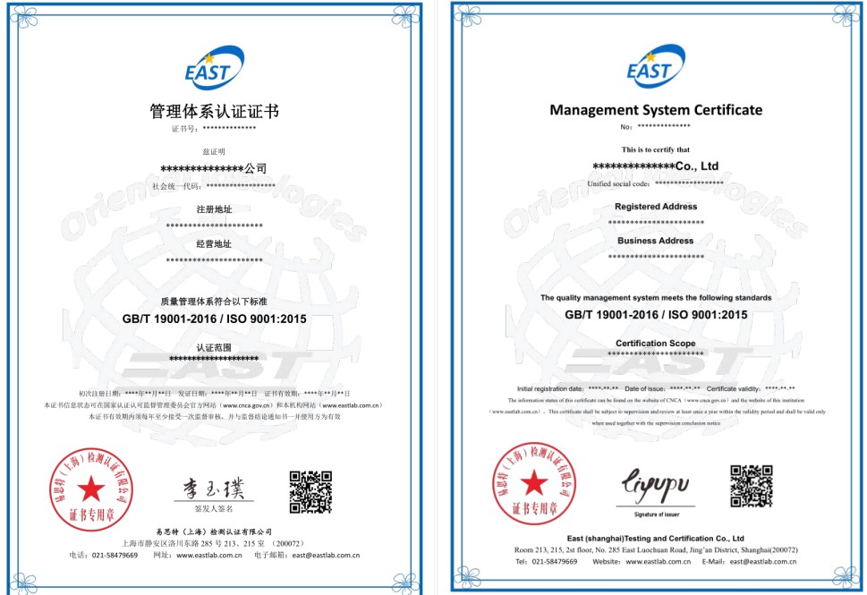 质量管理体系认证证书样式