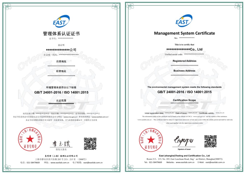 环境管理体系认证证书样式